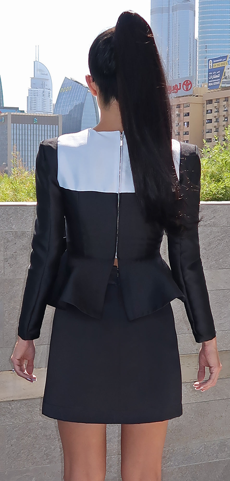 Stylish taffeta top in white and black
